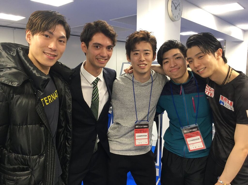 世界中どこの試合でも、バックヤードでは羽生選手との記念写真を撮りたい選手が列をなすとか。
