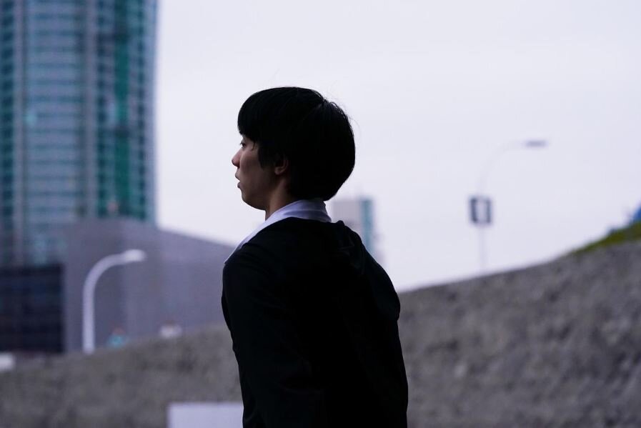「演技がない日の練習終わり。いまにも雨が降りそうな東京の空の下、帰路に着くところです。連戦の疲れが溜まっているはずで、無事であれ、とその背中を見て強く願いました」