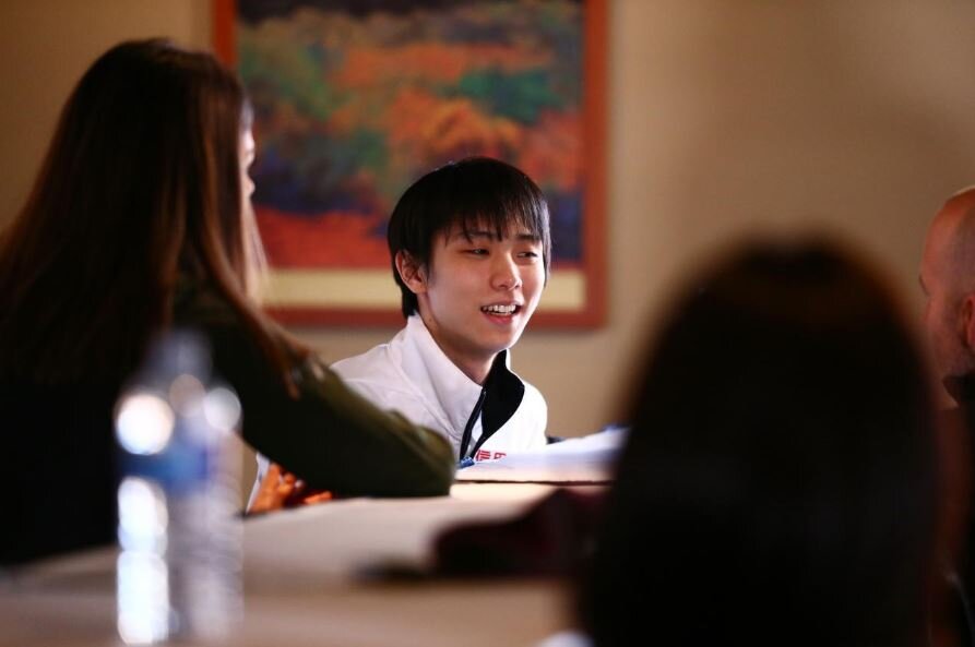 「すべての演技が終わった翌日、会見での一コマ。内容も成績も非常に良かったので、リラックスした雰囲気でした」