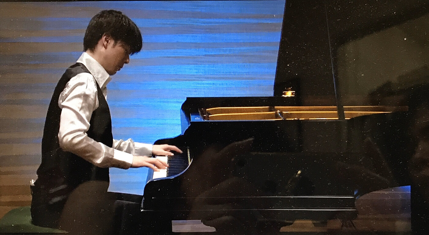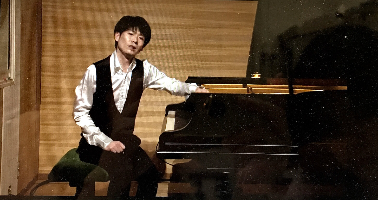 ご自宅かスタジオのピアノルームのようなお部屋からの中継でしたが、熱演でしたよ![]()
