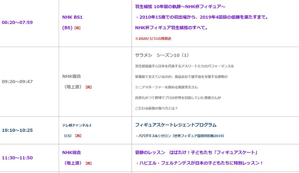 今日はその他にもフィギュアスケート関連のTV番組が満載です。