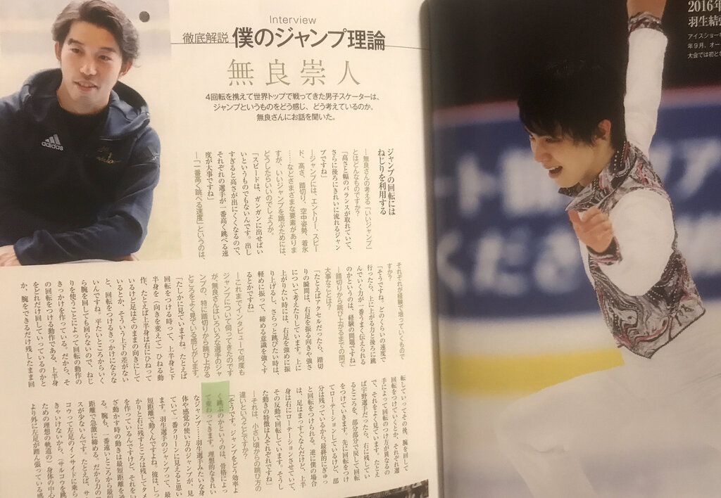 無良さんのお話は、自身が4回転ジャンパーとして、すごく具体的で、実際にジャンプ時の感覚を細かく説明して下さっているので、しろうとの私が読んでもとても分かり易くて納得できました。
