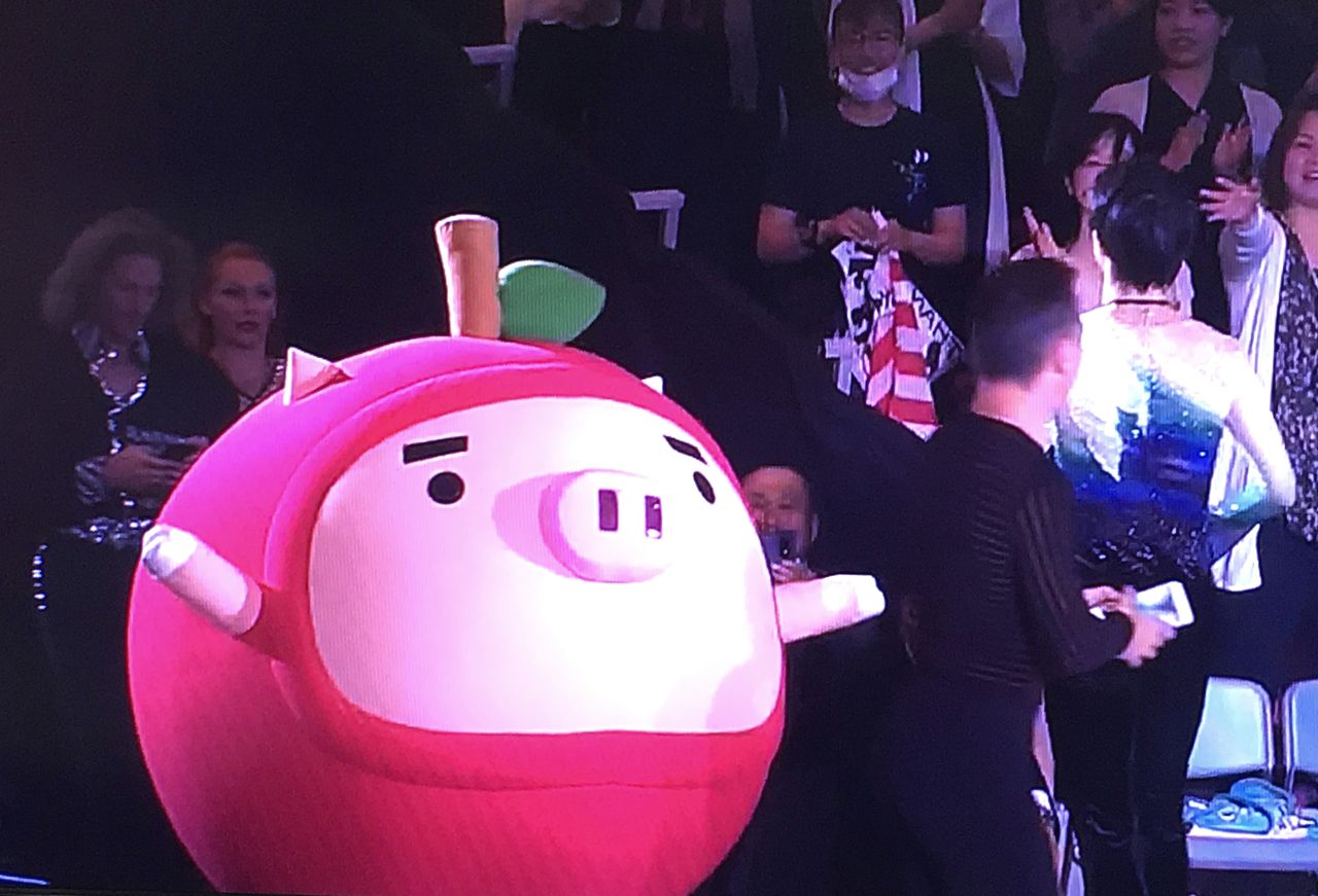 フィナーレではスケーター達がりんご丸のぬいぐるみを観客席に投げ込むパフォーマンスがありました。