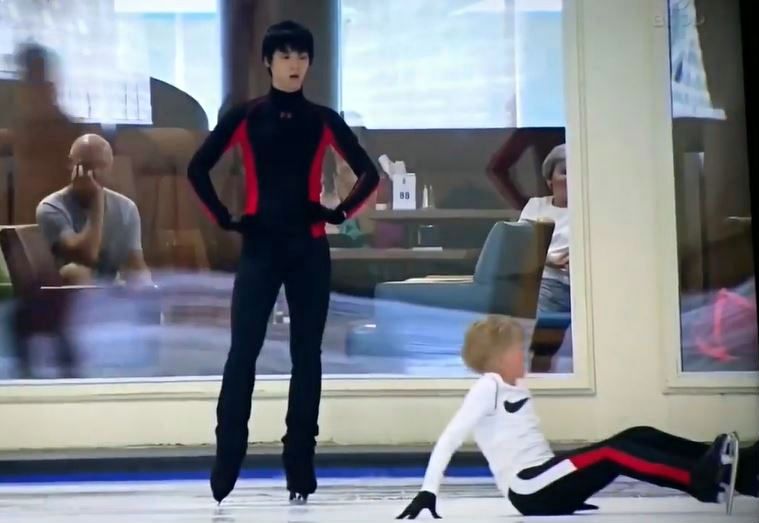 すらりとしたHanyuも、細くて金髪の5フィートの身長の彼の横に立てばオークツリー(樫の木)のように見える」