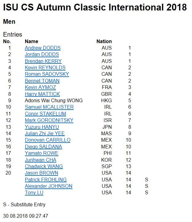 その上、オータムクラシック2018のエントリーも正式に発表されました。