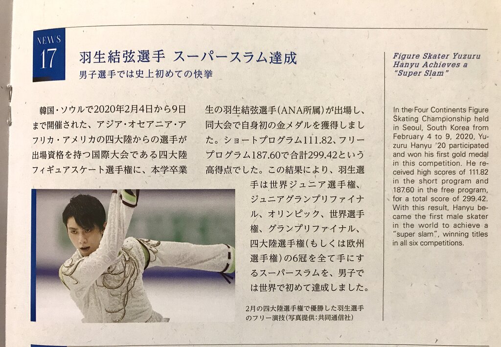 もし大学院に進学したら、「本学大学院生」の羽生結弦選手となりますね。
