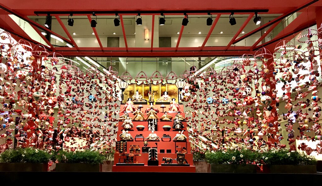 本屋さんの帰り道に見た近所の百貨店の大きな雛段飾り。
