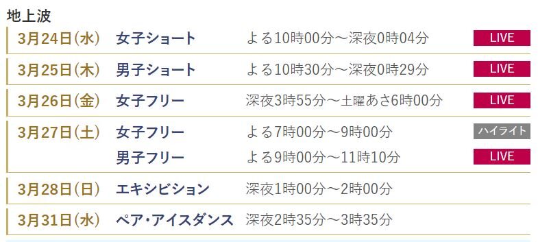 男子SPは25日午前11時30分(日本時間午後7時30分)、フリーは27日午前11時(日本時間午後7時)に始まる。