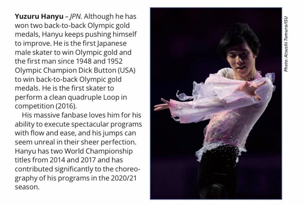 日本勢は羽生結弦 宇野昌磨、紀平梨花が紹介されています