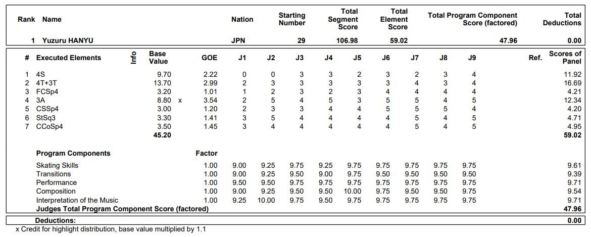 そのルールを適用した場合に、ノーミスだった羽生選手の最高点の10点に相当するのは、