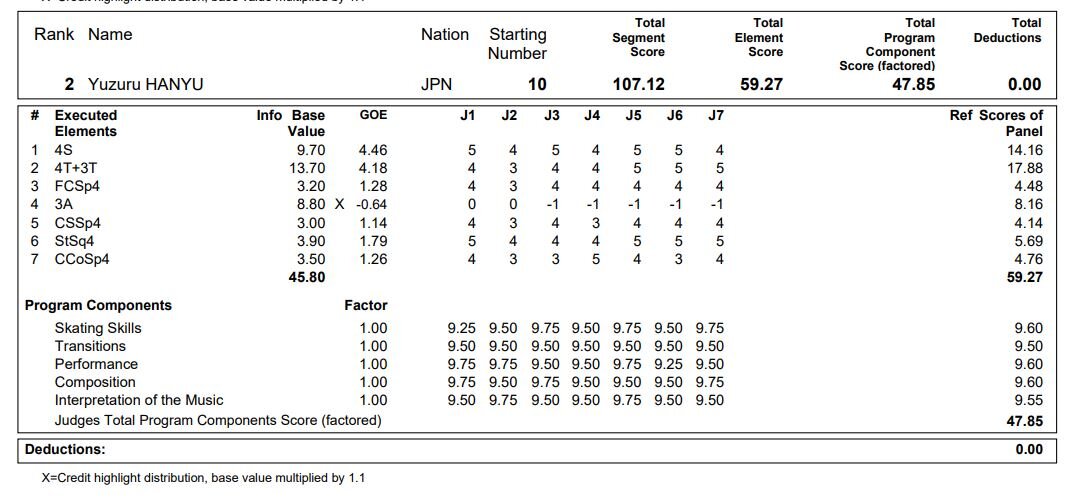 確かに基礎点は羽生選手の方が少し低いのにもかかわらず、