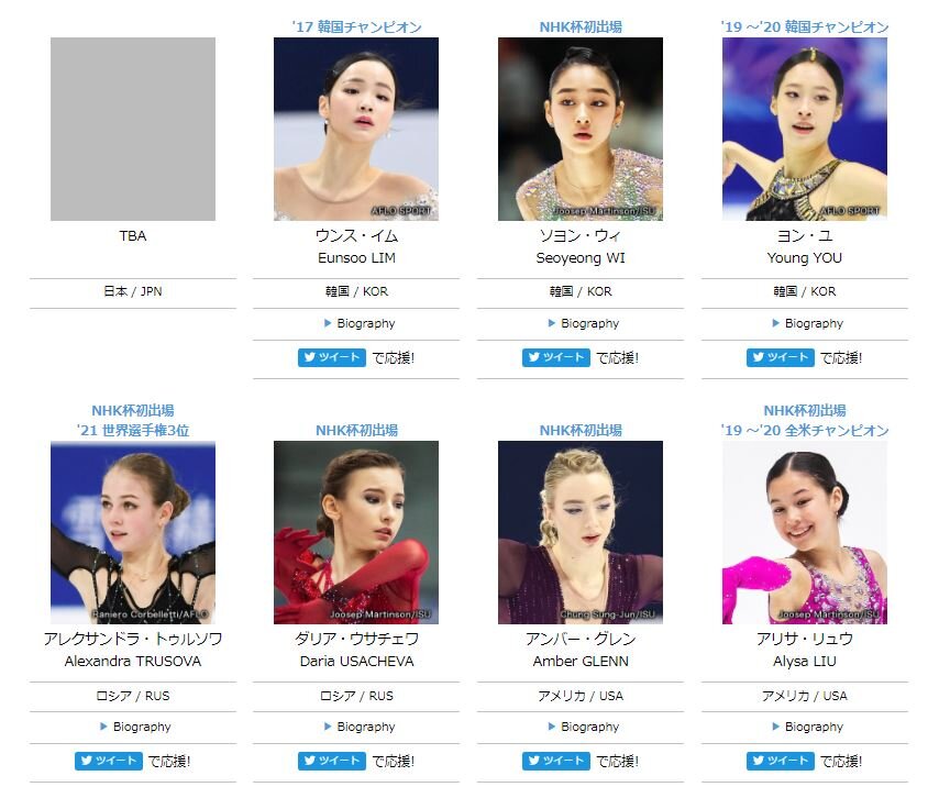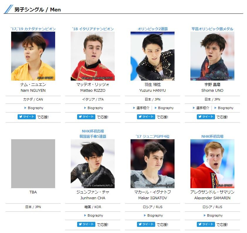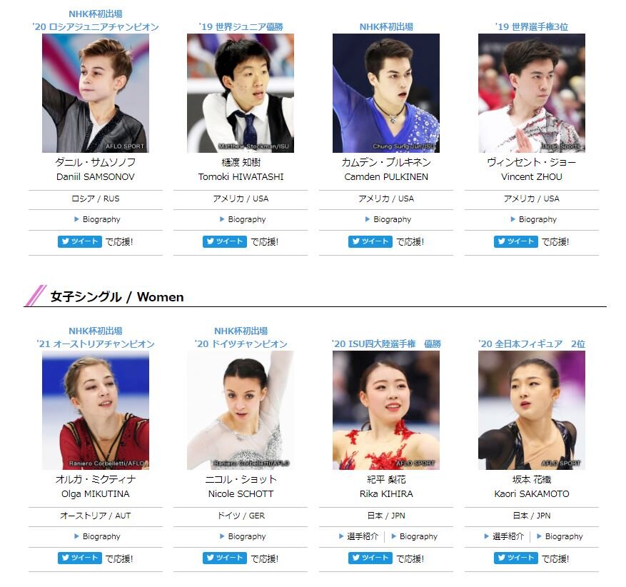 2021NHK杯大会HPの選手ページとFAQを更新しました。https://t.co/HO0hoWgbmE#フィギュアスケート #NHK杯フィギュア #GPFigure