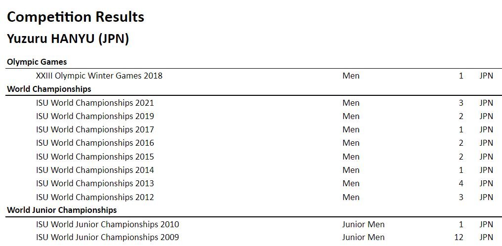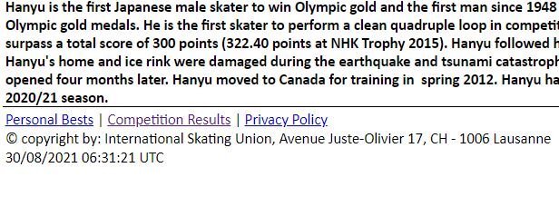 「ハローISU、羽生結弦が第22回冬季オリンピック22014で優勝した結果が、昨日2021年8月30日に更新された彼の最新の競技結果ページに記載されていない理由を説明していただけますか?」