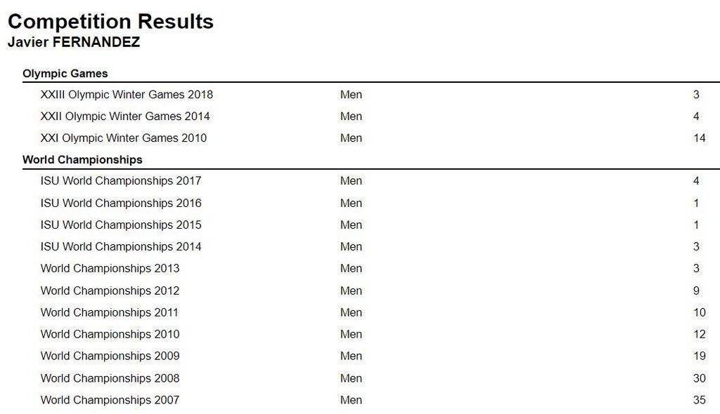 念のため、2010年・2014年・2018年と3大会連続して冬季オリンピックに出場していたハビの記録を見てみました。