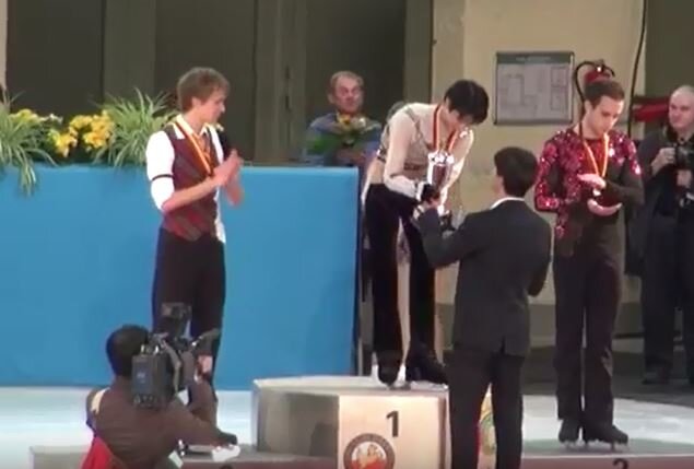 そして表彰台の真ん中に立つ羽生選手にトロフィーを渡したのはステファン・ランビエールさん!