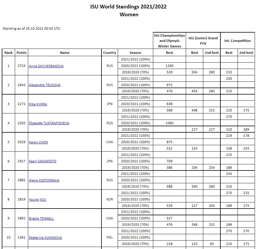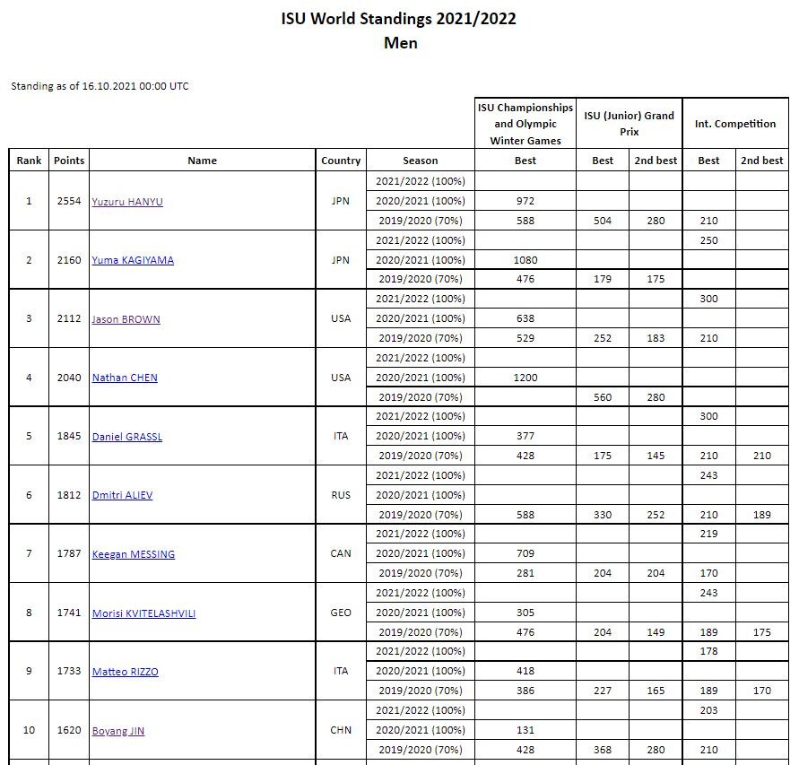 鍵山選手、ブラウン選手は、今シーズンになってからの国際試合に出場したことで順位を上げていますが、