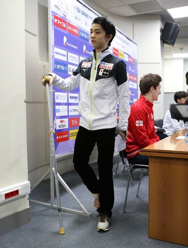 日本スケート連盟の関係者によると、昨日の公式練習の振りつけで氷に手を突いた時に左肩を痛めた。レントゲン検査の画像を現地と国内のドクターに見てもらった結果、双方とも診断は「左肩鎖関節脱臼」。(続く)— 岩佐友 (@yu_iwa3) October 22, 2021