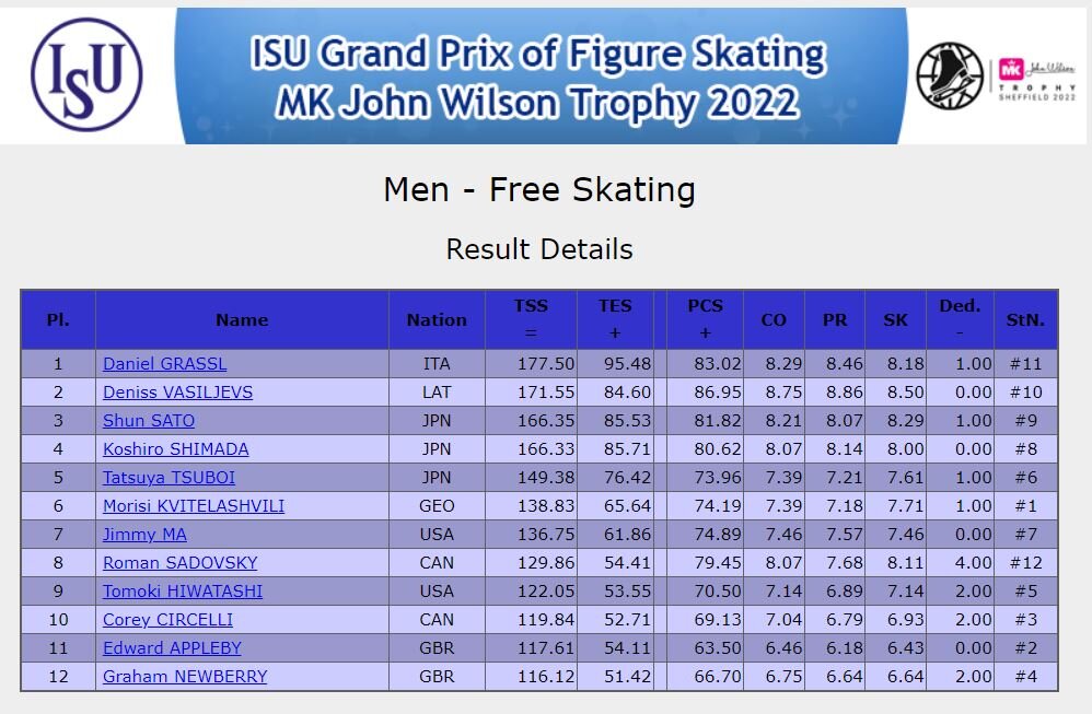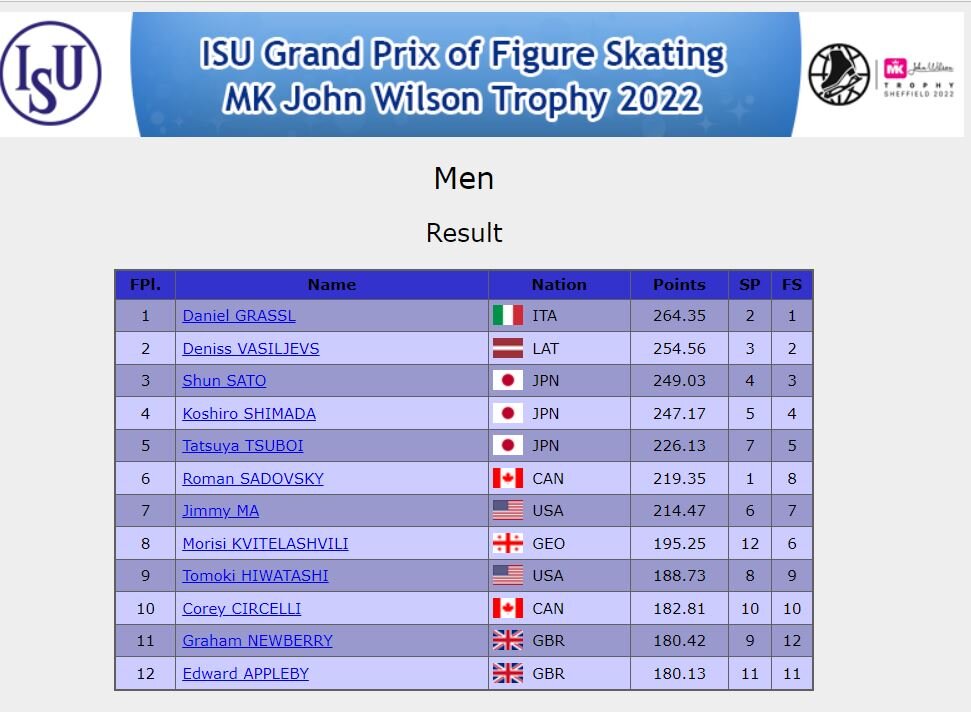 佐藤選手はSPでは4位でしたが、FSで3位となり、総合では3位となりました。