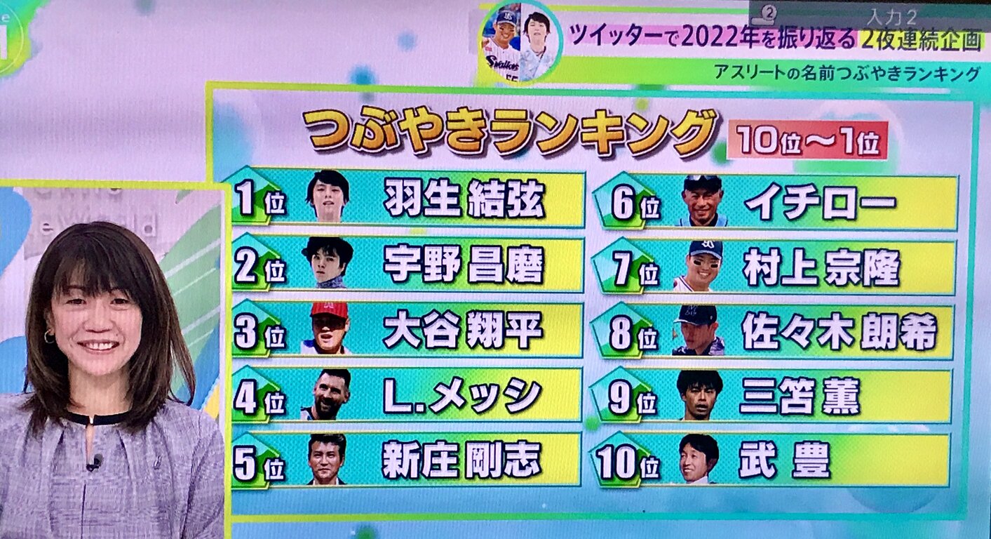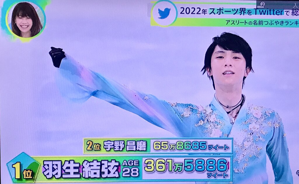 2022年のTwitterでのつぶやきランキング、羽生結弦選手が断トツのTOPです。