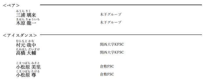 四大陸選手権に派遣されるのは、男子は島田高志郎選手、佐藤駿選手、三浦佳生選手に決まりました。
